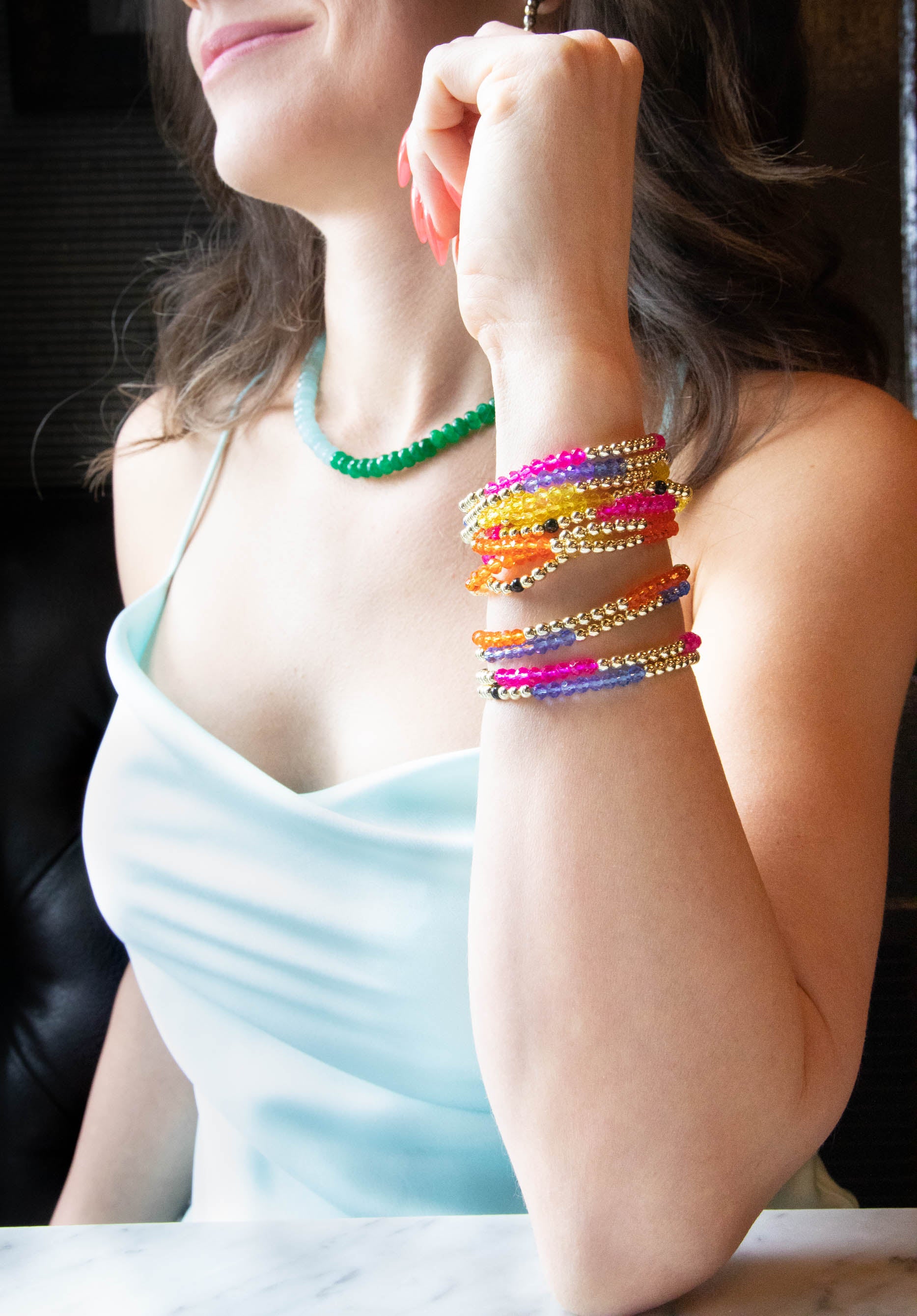 In their first bracelets, A+B included 5 black vinyl beads as a symbol of their 5 kids. Today, it's evolved into a black element or bead in every piece. Not only does it make their jewelry easy to spot, but also serves as a constant reminder of their biggest why.