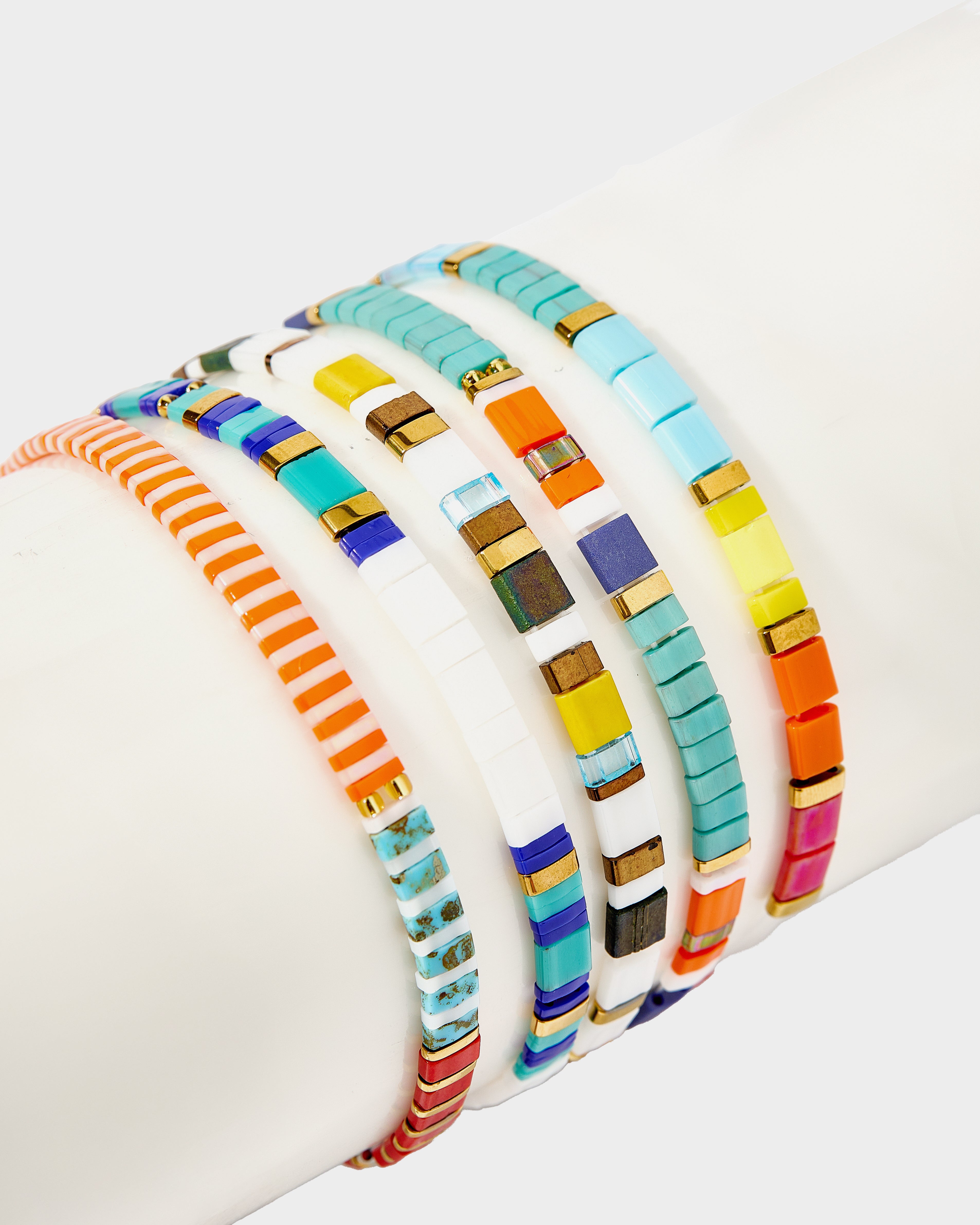 In their first bracelets, A+B included 5 black vinyl beads as a symbol of their 5 kids. Today, it's evolved into a black element or bead in every piece. Not only does it make their jewelry easy to spot, but also serves as a constant reminder of their biggest why.