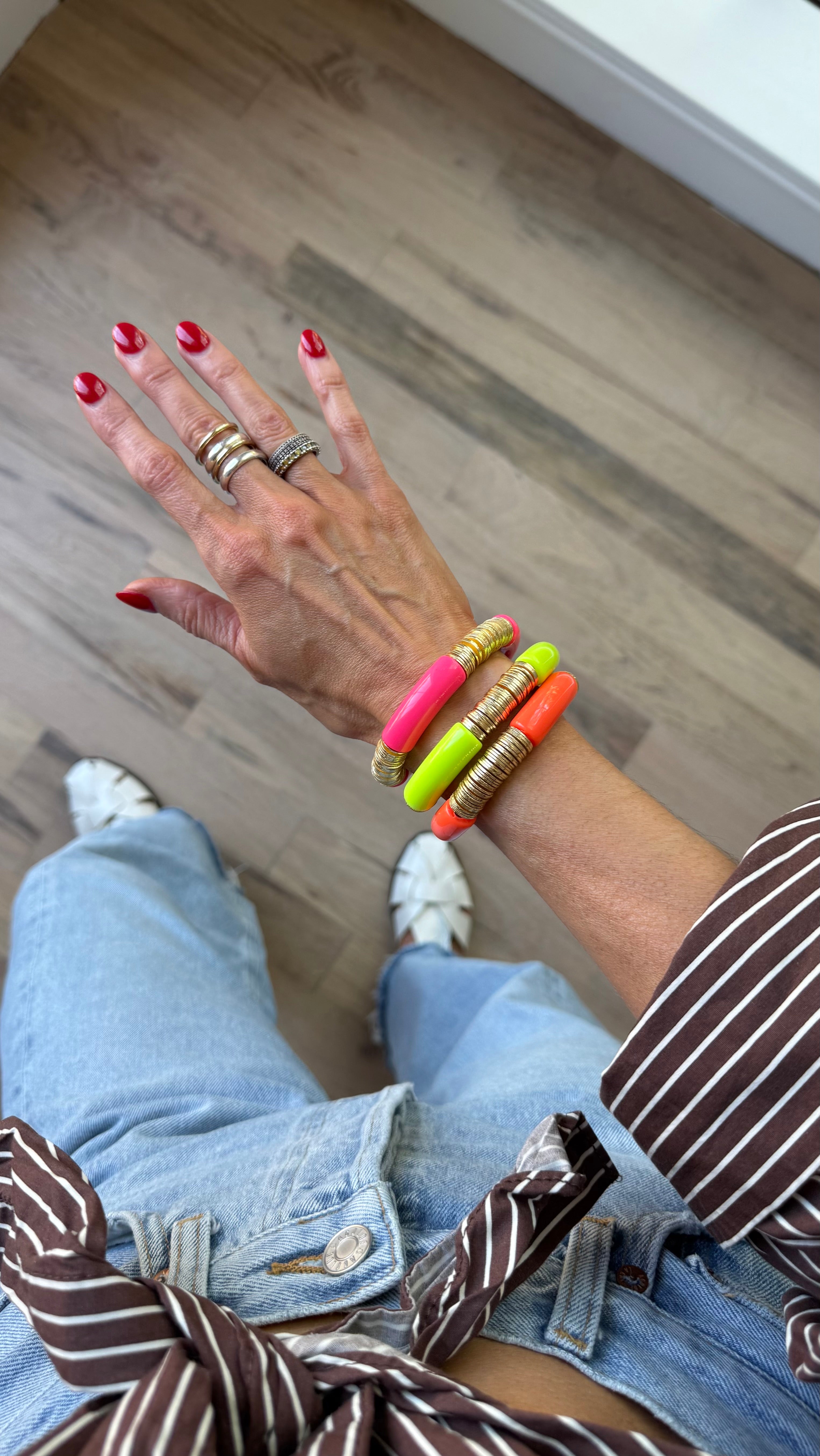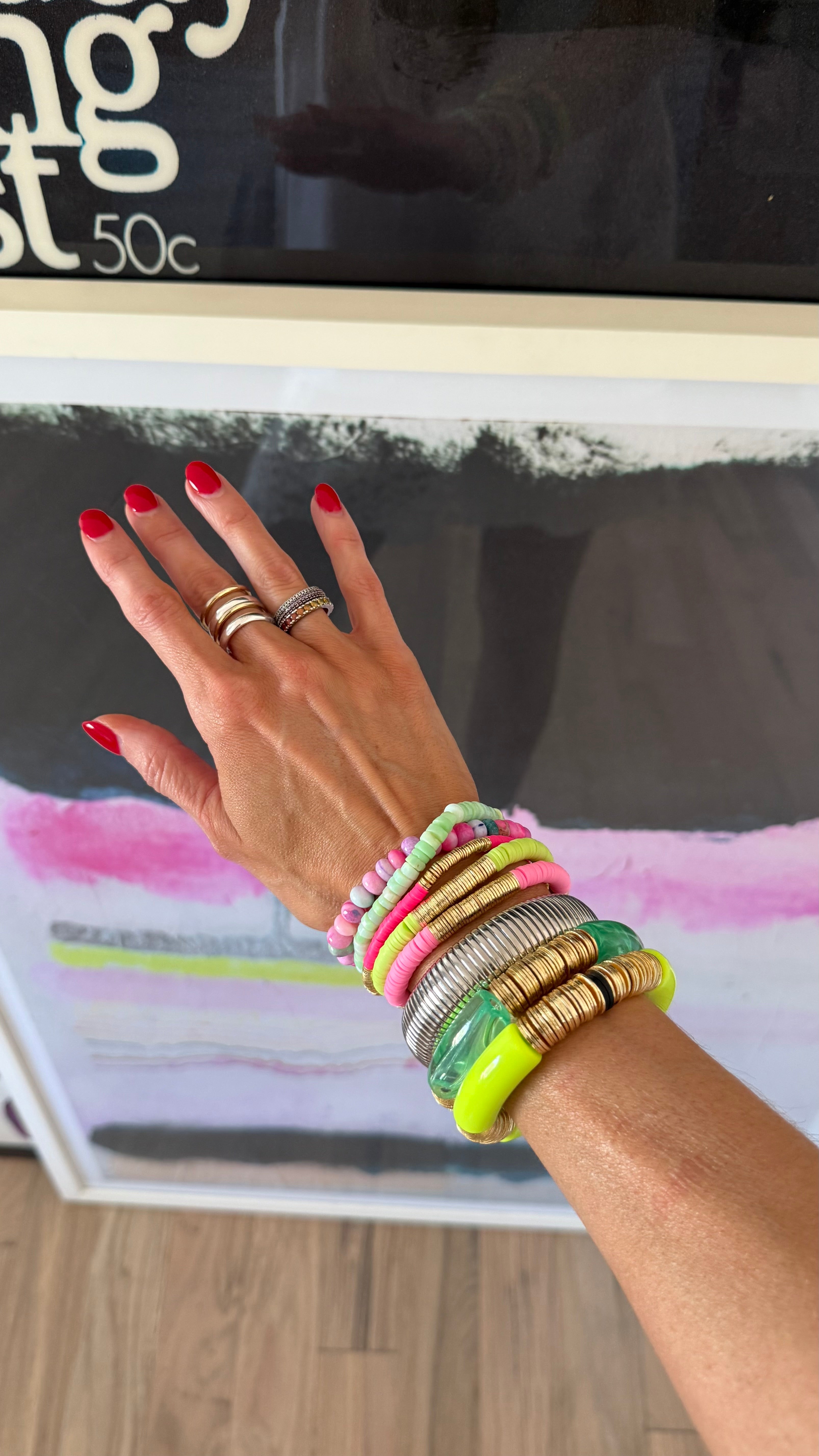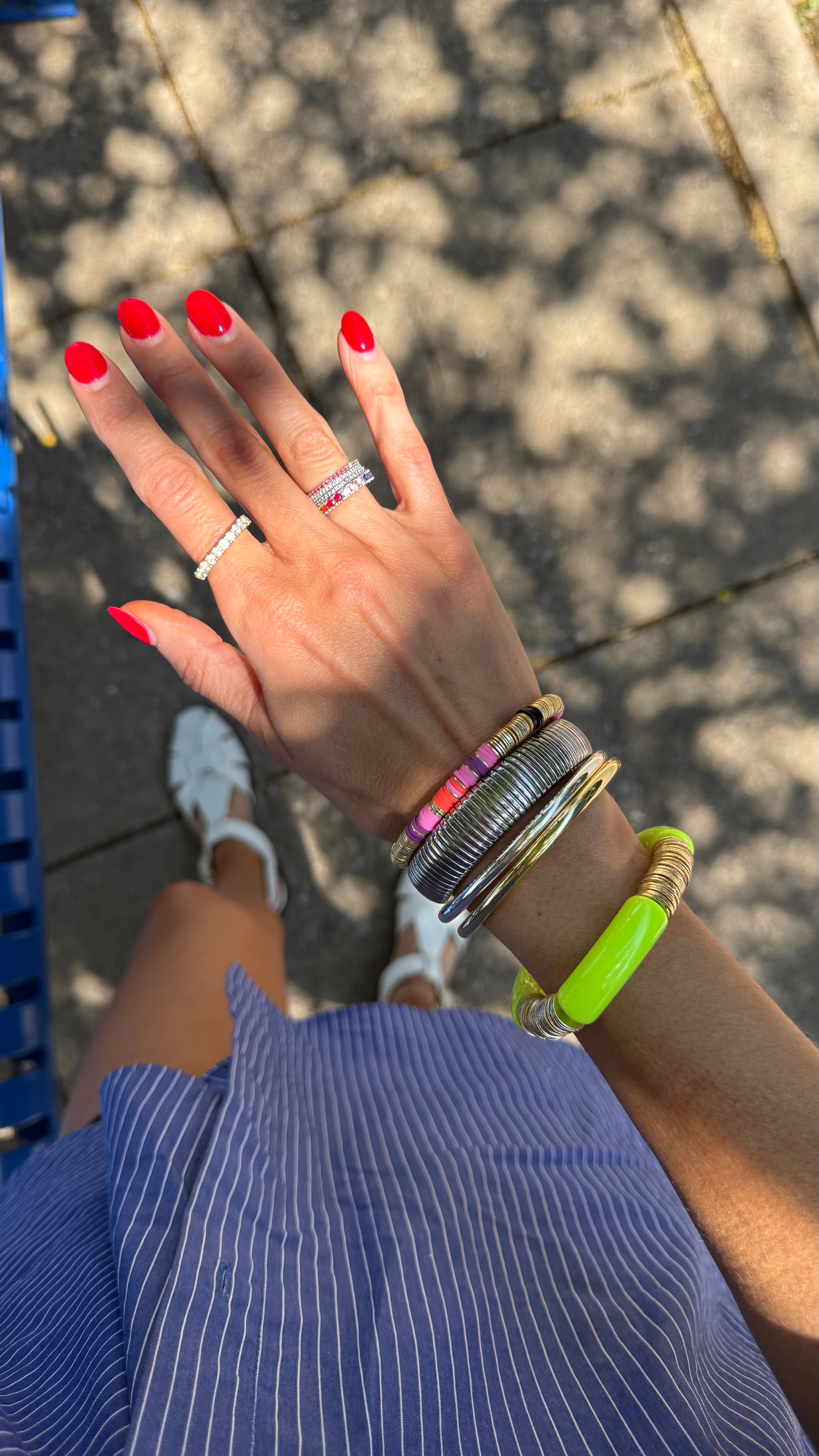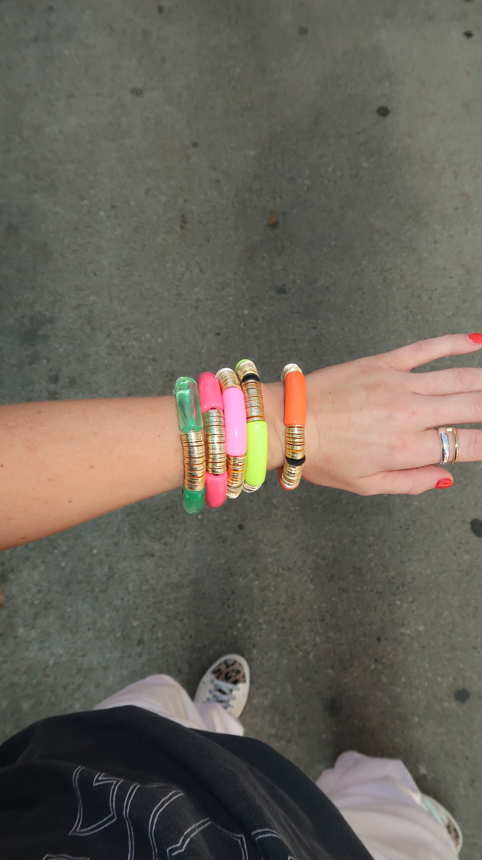 In their first bracelets, A+B included 5 black vinyl beads as a symbol of their 5 kids. Today, it's evolved into a black element or bead in every piece. Not only does it make their jewelry easy to spot, but also serves as a constant reminder of their biggest why.