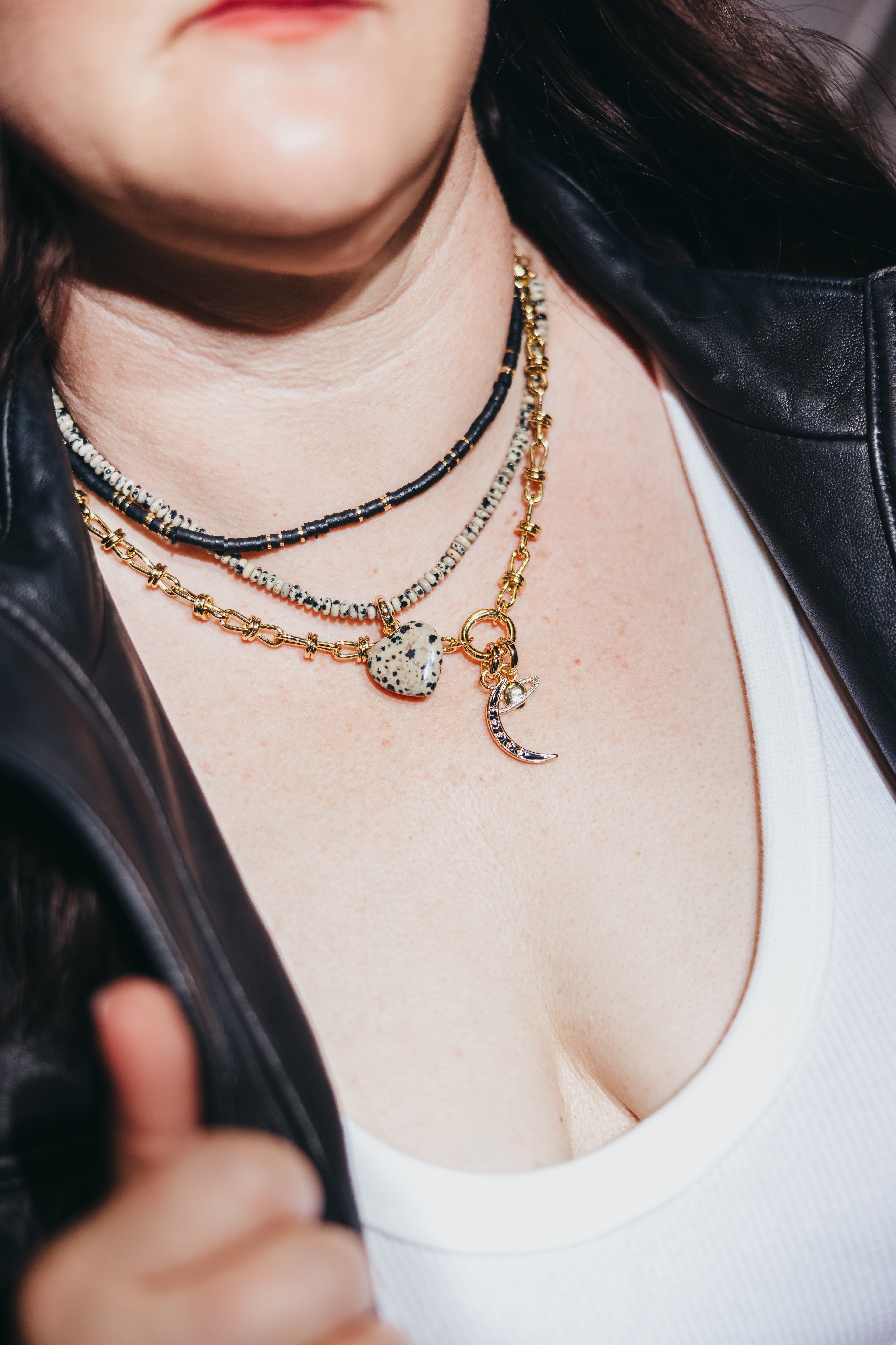In their first bracelets, A+B included 5 black vinyl beads as a symbol of their 5 kids. Today, it's evolved into a black element or bead in every piece. Not only does it make their jewelry easy to spot, but also serves as a constant reminder of their biggest why.