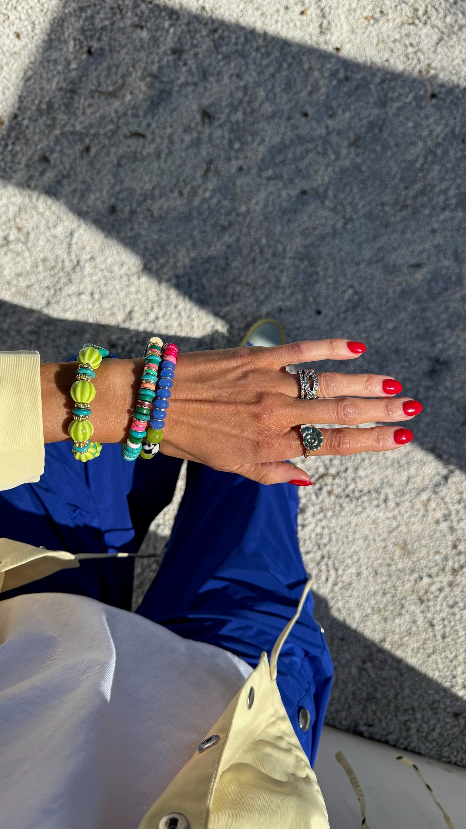 In their first bracelets, A+B included 5 black vinyl beads as a symbol of their 5 kids. Today, it's evolved into a black element or bead in every piece. Not only does it make their jewelry easy to spot, but also serves as a constant reminder of their biggest why.