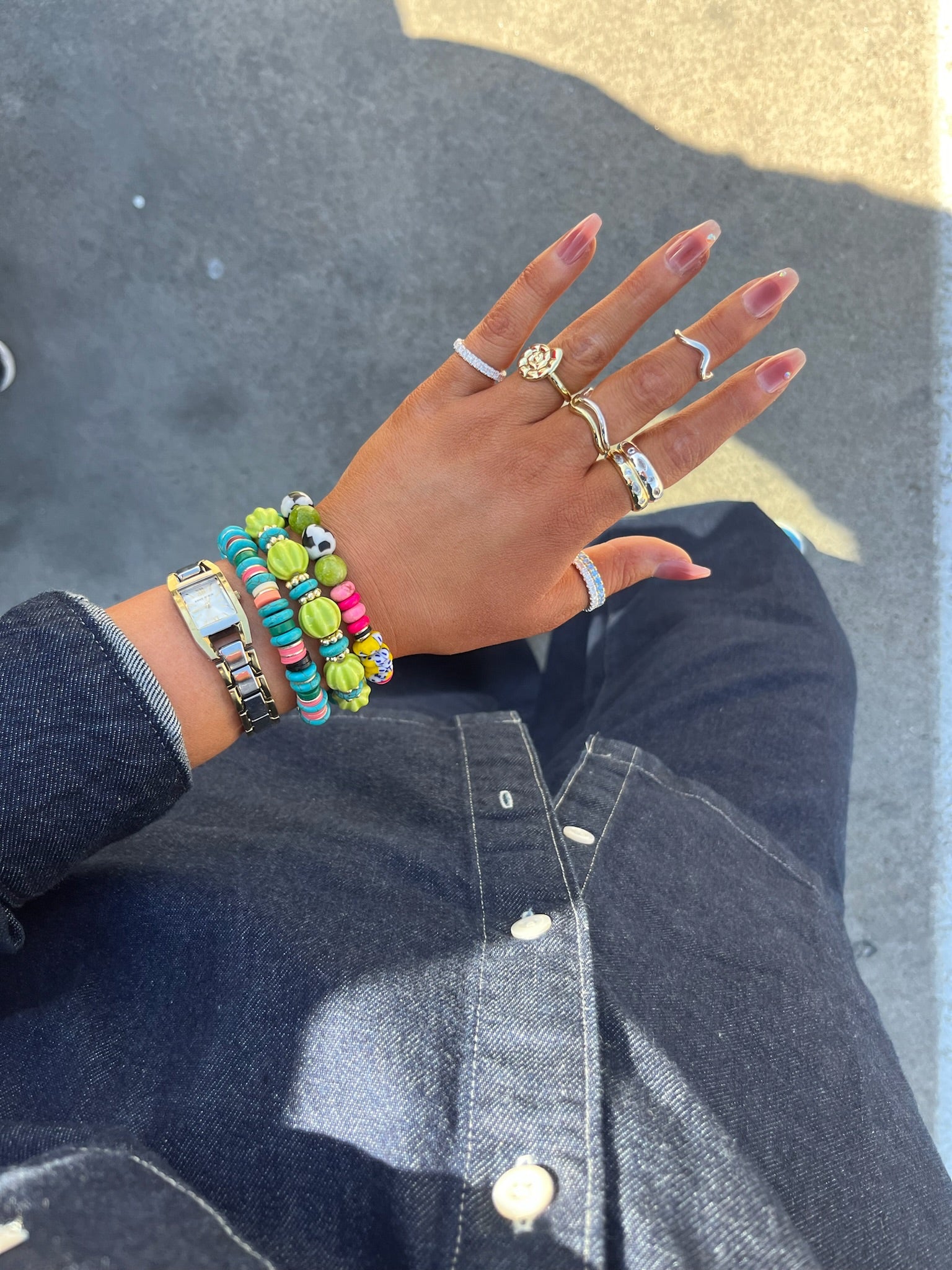 In their first bracelets, A+B included 5 black vinyl beads as a symbol of their 5 kids. Today, it's evolved into a black element or bead in every piece. Not only does it make their jewelry easy to spot, but also serves as a constant reminder of their biggest why.