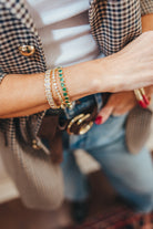 In their first bracelets, A+B included 5 black vinyl beads as a symbol of their 5 kids. Today, it's evolved into a black element or bead in every piece. Not only does it make their jewelry easy to spot, but also serves as a constant reminder of their biggest why.