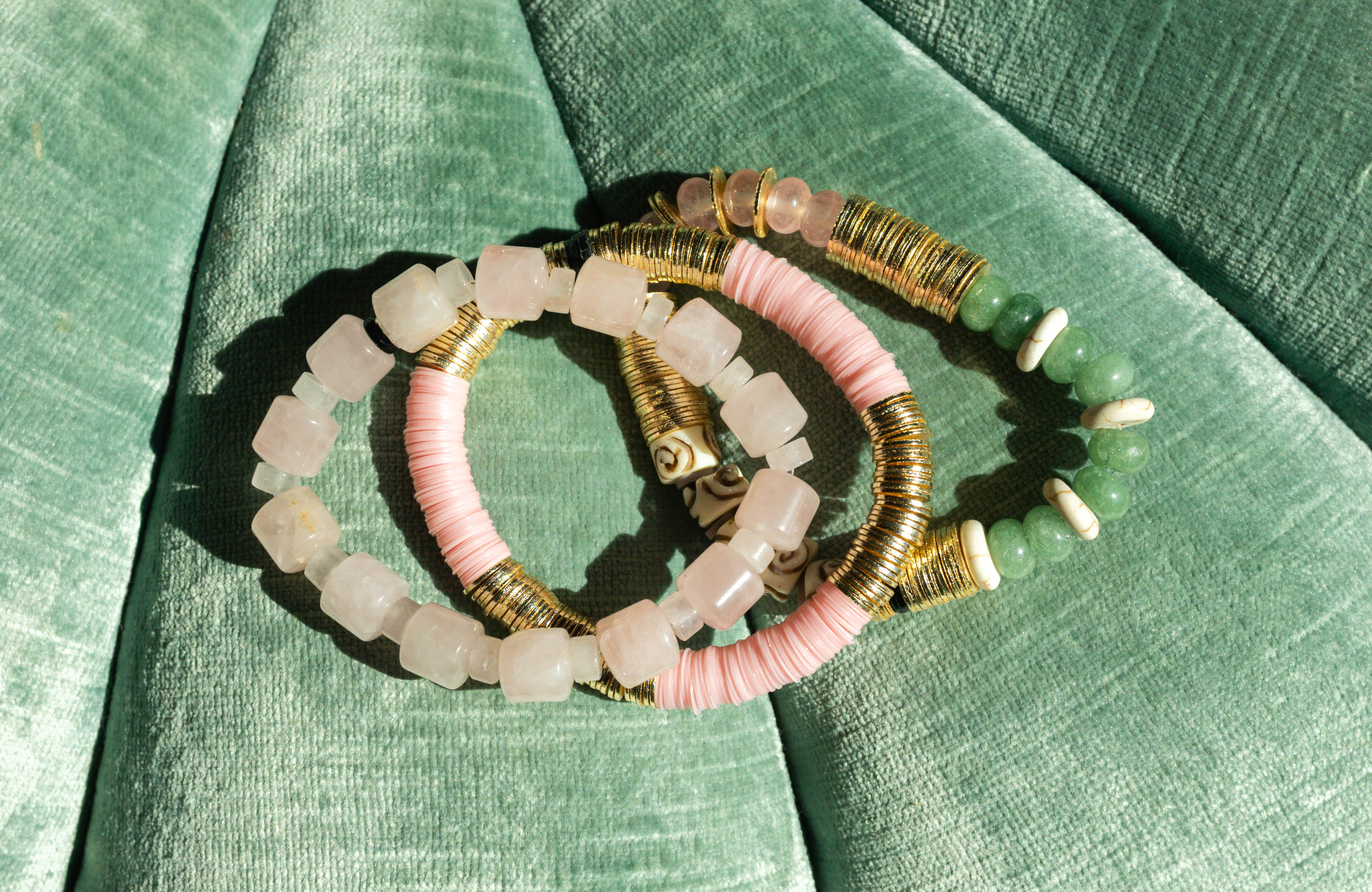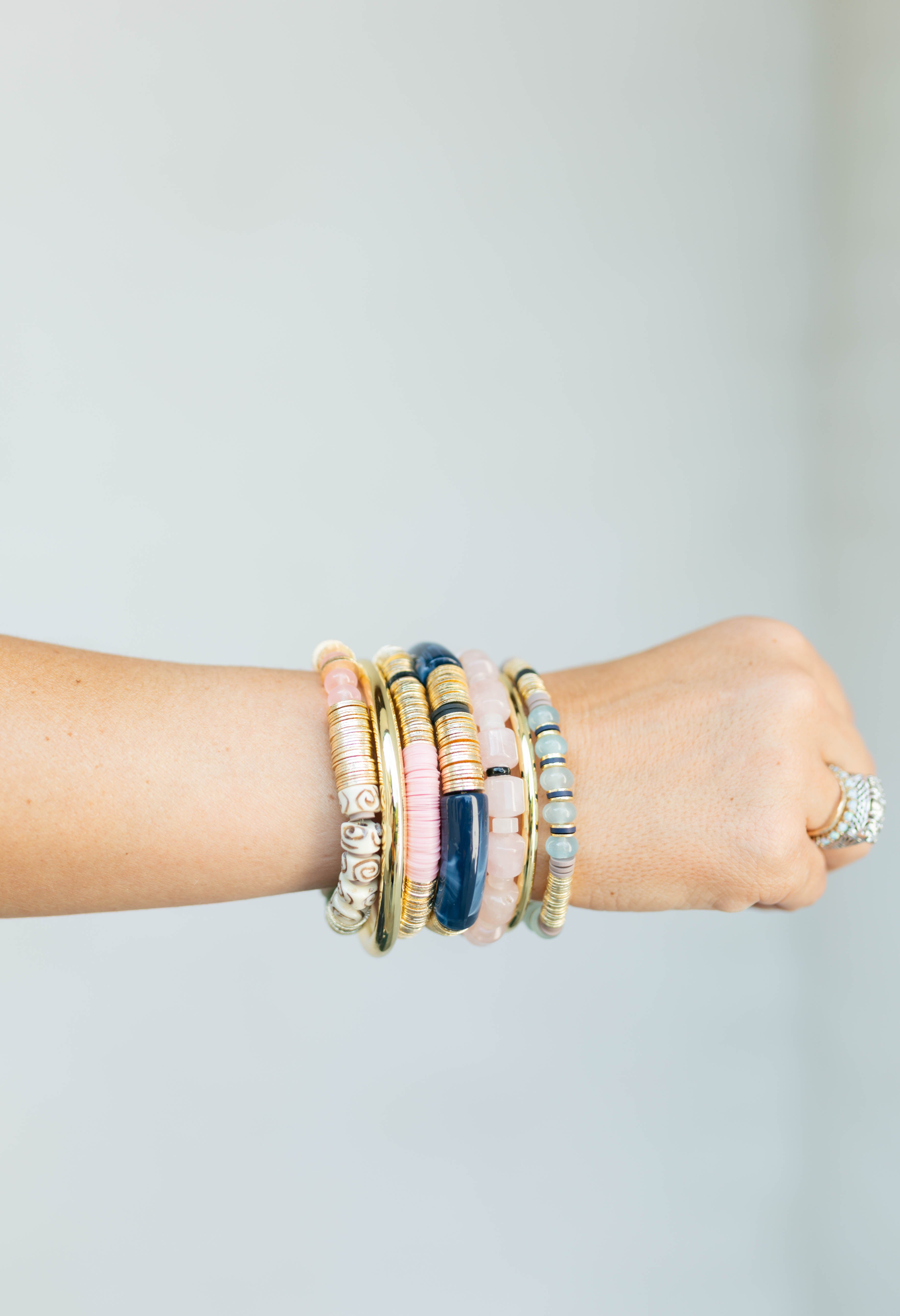 In their first bracelets, A+B included 5 black vinyl beads as a symbol of their 5 kids. Today, it's evolved into a black element or bead in every piece. Not only does it make their jewelry easy to spot, but also serves as a constant reminder of their biggest why.