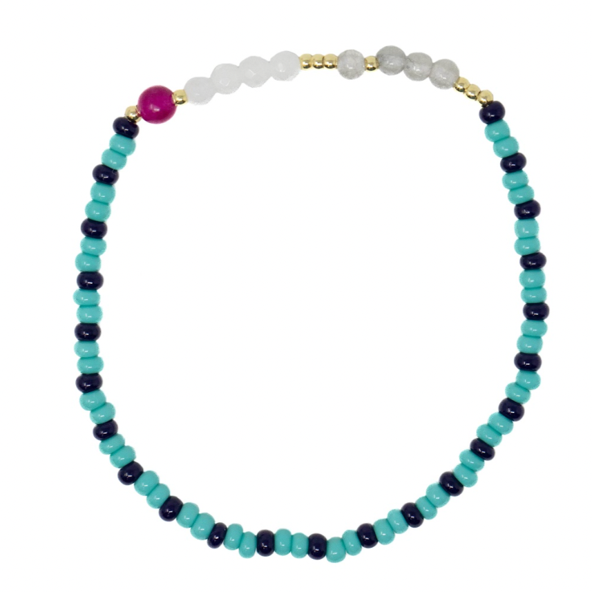 In their first bracelets, A+B included 5 black vinyl beads as a symbol of their 5 kids. Today, it's evolved into a black element or bead in every piece. Not only does it make their jewelry easy to spot, but also serves as a constant reminder of their biggest why.