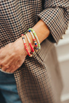 In their first bracelets, A+B included 5 black vinyl beads as a symbol of their 5 kids. Today, it's evolved into a black element or bead in every piece. Not only does it make their jewelry easy to spot, but also serves as a constant reminder of their biggest why.