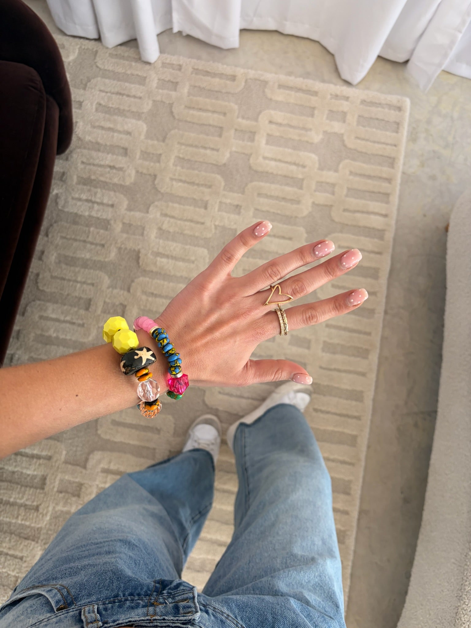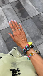 In their first bracelets, A+B included 5 black vinyl beads as a symbol of their 5 kids. Today, it's evolved into a black element or bead in every piece. Not only does it make their jewelry easy to spot, but also serves as a constant reminder of their biggest why.