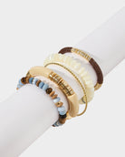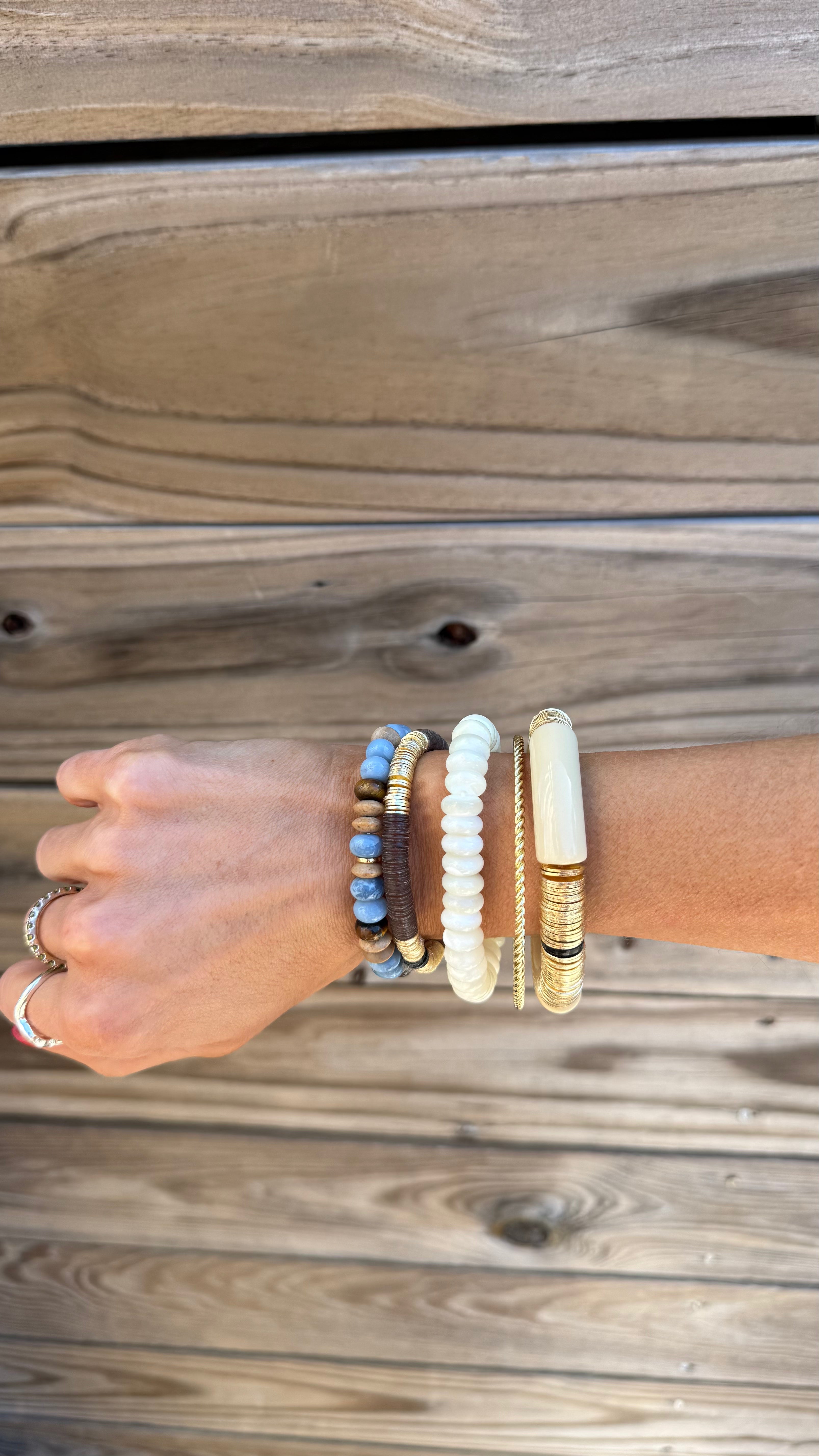 In their first bracelets, A+B included 5 black vinyl beads as a symbol of their 5 kids. Today, it's evolved into a black element or bead in every piece. Not only does it make their jewelry easy to spot, but also serves as a constant reminder of their biggest why.