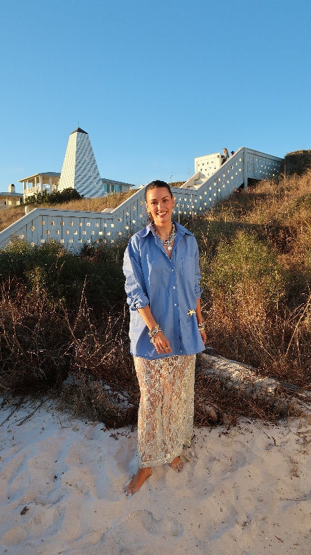 Newport is meant to feel like a quiet morning by the ocean. The kind where the air is cool, the water is calm, and everything moves a little slower. Navy against white sand. Soft blue meeting open sky. Pieces that don’t compete for attention, they settle into it.This collection is a refined evolution of coastal.