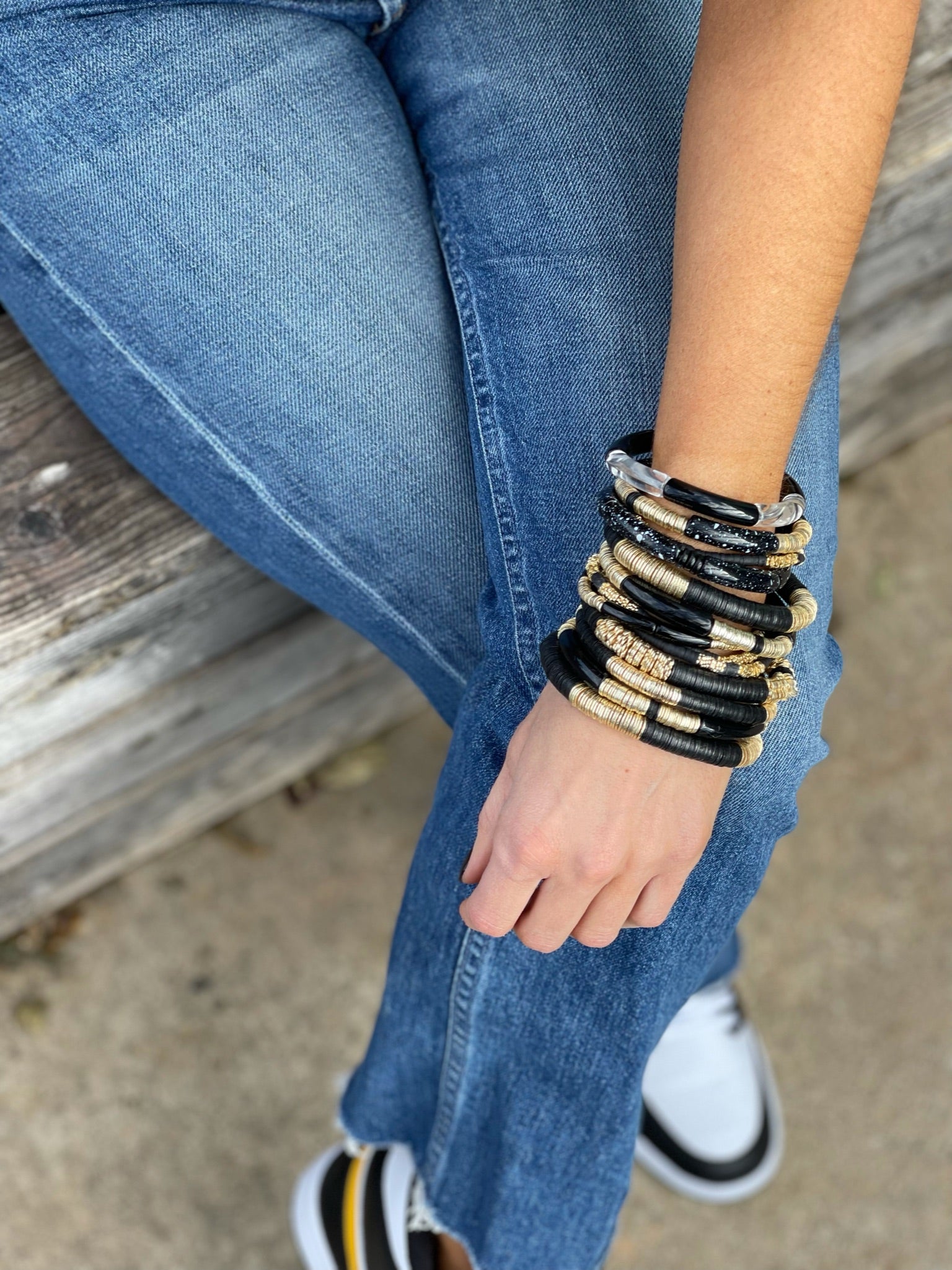 In their first bracelets, A+B included 5 black vinyl beads as a symbol of their 5 kids. Today, it's evolved into a black element or bead in every piece. Not only does it make their jewelry easy to spot, but also serves as a constant reminder of their biggest why.